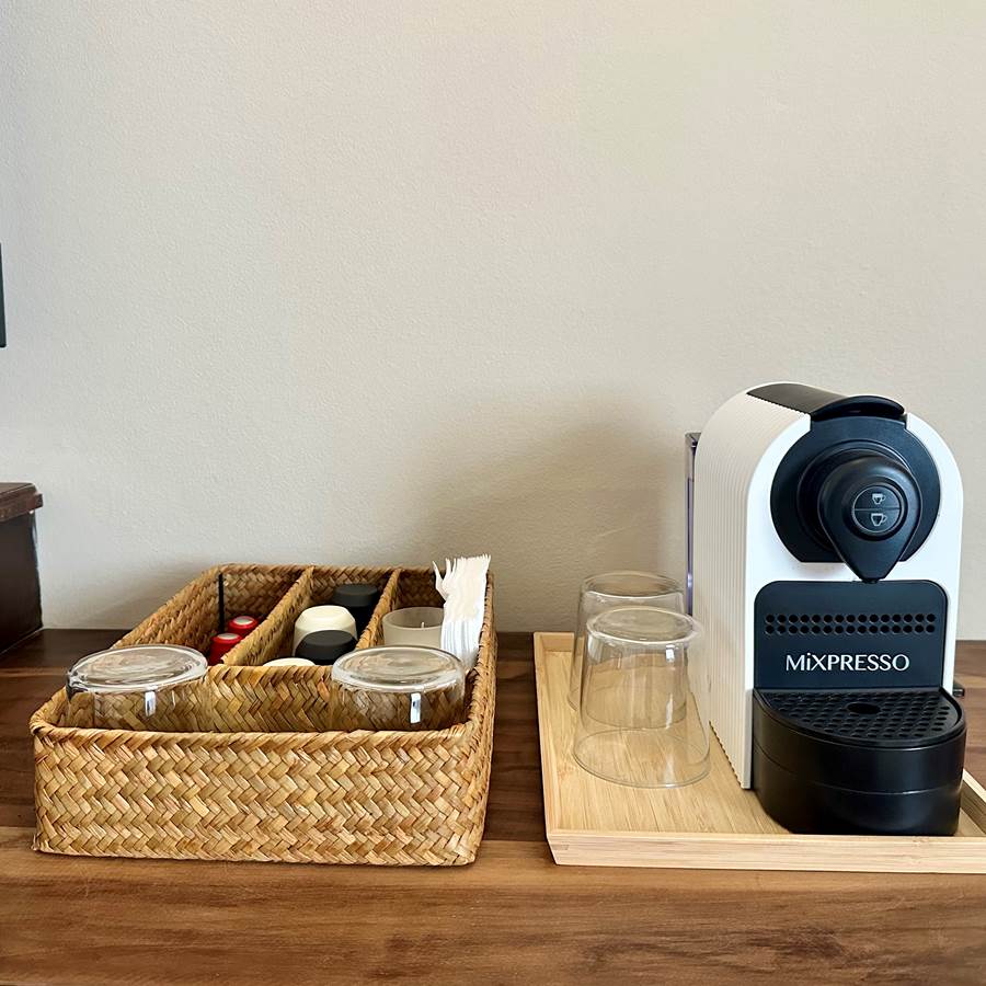 Elle est équipée d'un lit king-size, d'une salle de bain attenante privée, d'un réfrigérateur avec minibar, d'une machine Nespresso, de peignoirs et d'une télévision connectée.